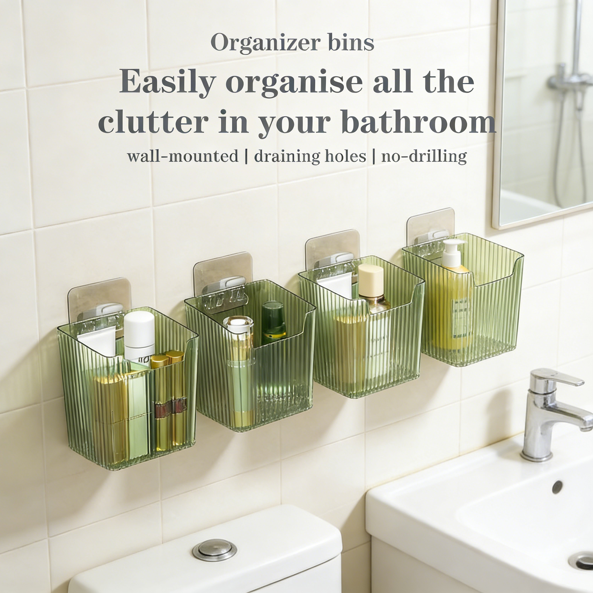 No-Drill Wall Mounted Storage Bins, Stackable PET Organizer for Home & Bathroom