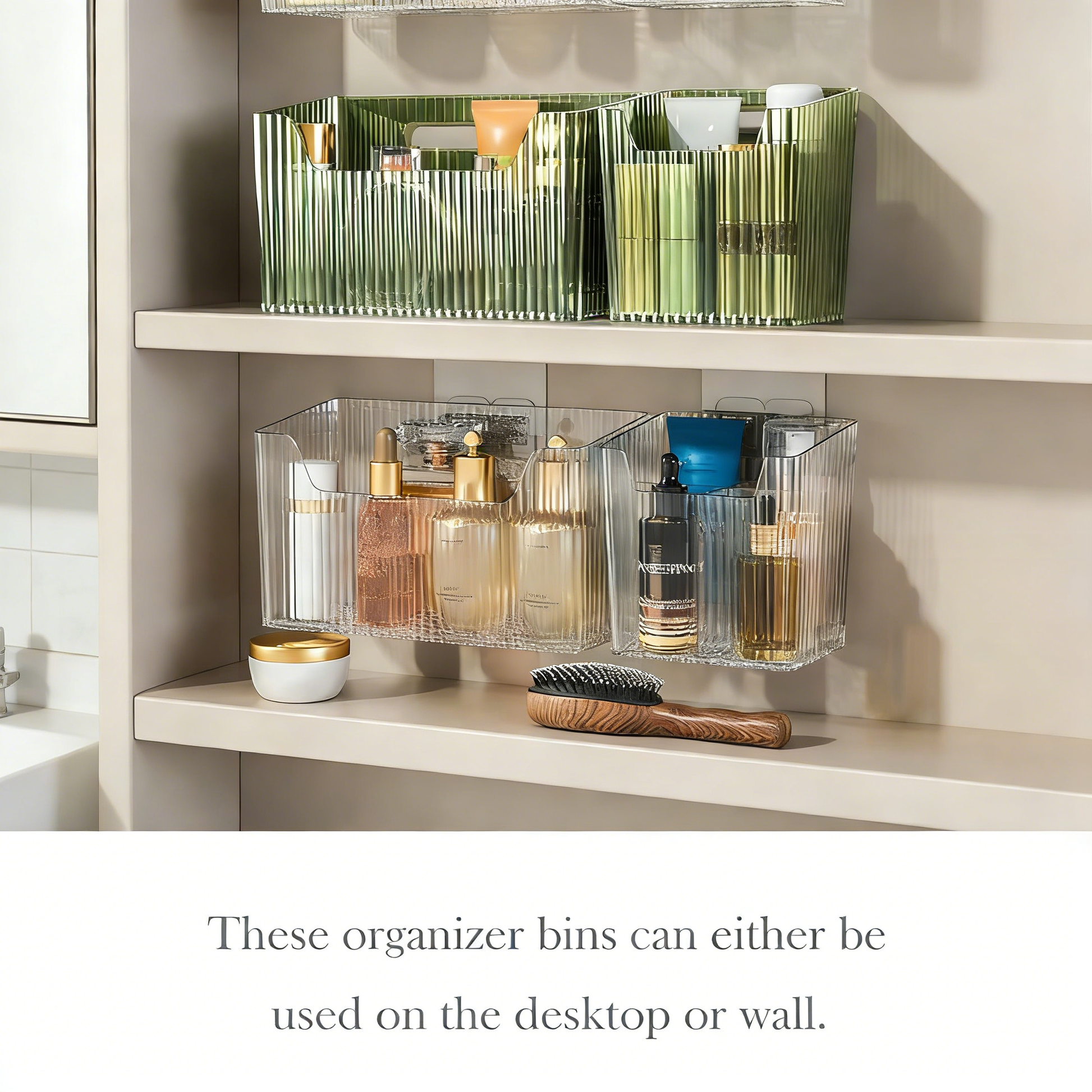 - 2-in-1 Usage Design: Can be used as wall-mounted storage with adhesive stickers or desktop organizers, perfect for bathrooms, living rooms, and vanities.
