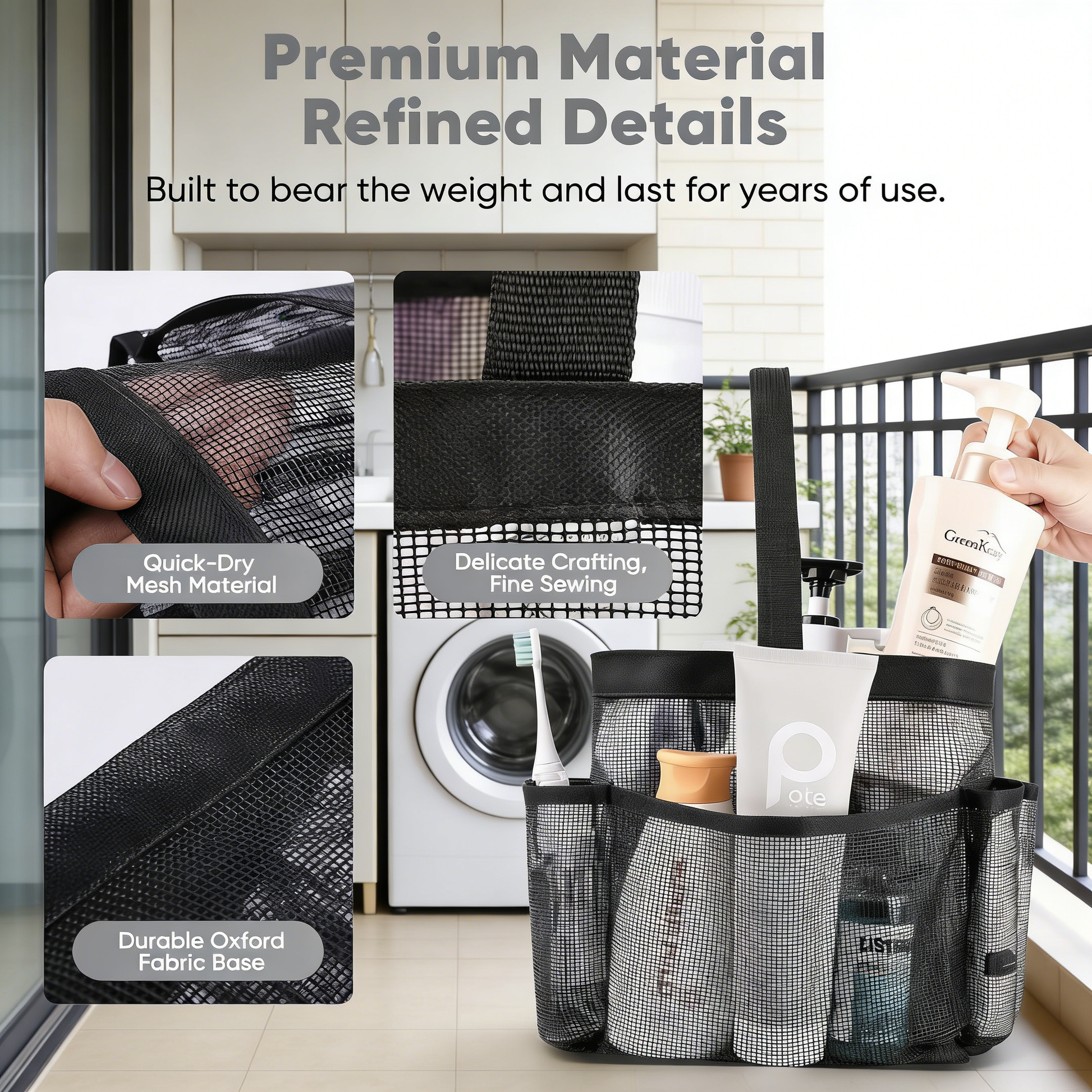 Portable Mesh Shower Caddy Tote Bag with Multiple Pockets
